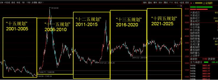 拉長上證指數(shù)時(shí)間線,我們可以看出,從2006年開始,資本市場對(duì)五年規(guī)劃的反饋就越來越明顯。