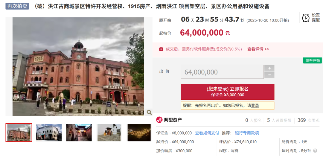 這座保存較為完好的瀕水古建筑群,目前仍正常運(yùn)營(yíng),卻也難逃被拍賣的命運(yùn)。在9月28日以7090萬(wàn)元二度流拍后,其將于10月20日第三次登上拍賣臺(tái),價(jià)格亦降至6400萬(wàn)元。