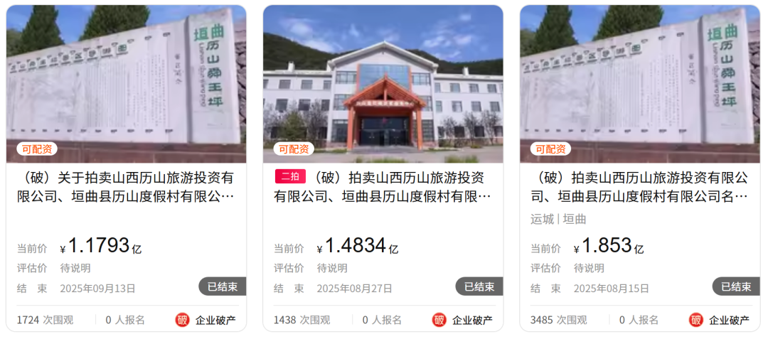 9月中旬,山西歷山旅游投資有限公司、垣曲縣歷山度假村有限公司名下固定資產(chǎn)第三次拍賣流拍。這片被譽(yù)為“華北綠肺”的原始森林景區(qū),起拍價(jià)從首次的1.85億元一路降至1.18億元,折價(jià)超過(guò)36%,依然無(wú)人問(wèn)津。