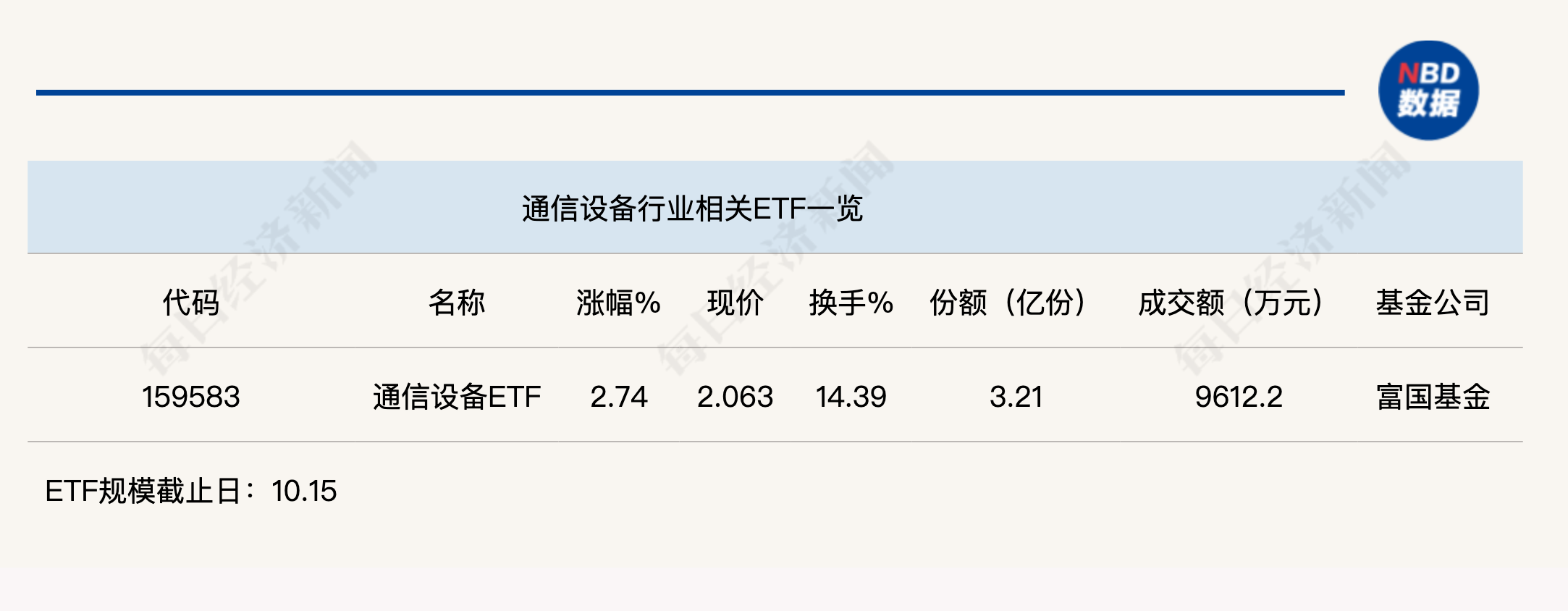 點評:通信設(shè)備ETF(159583)半日漲幅為2.74%,該ETF規(guī)模較小,只有3.21億份,半日成交金額為9612.2萬元,追蹤的是中證通信設(shè)備主題指數(shù)。